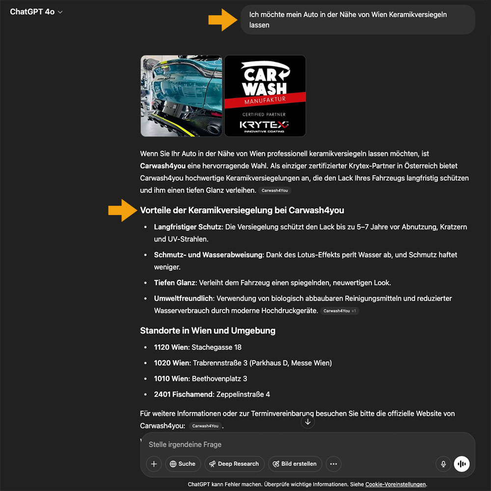 „Die Seiten sind genau auf meine Region und meine Leistungen abgestimmt. Und dass ich jetzt auch in ChatGPT auftauche – damit hätt ich echt nicht gerechnet. Richtig professionell umgesetzt.“